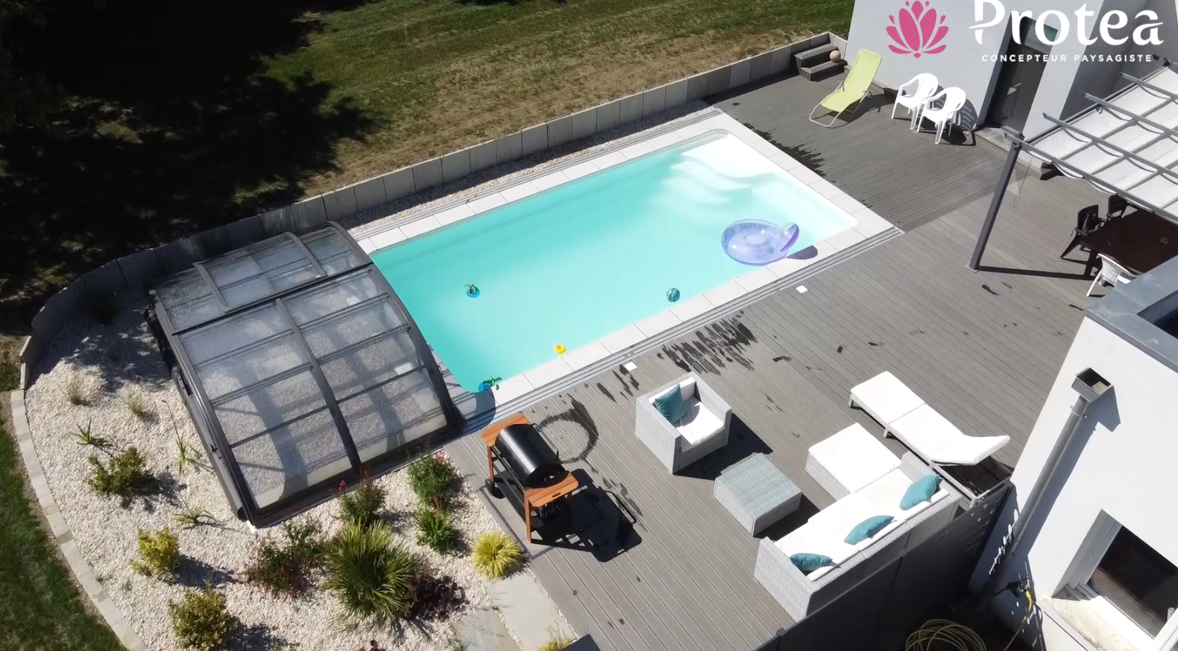 Aménagement de l'espace extérieur, tout autour de la piscine. Protea se charge d'imaginer votre extérieur et de l'agencer selon votre demande. Profitez de votre extérieur, comme vous l'avez imaginé grâce à une équipe professionnelle.