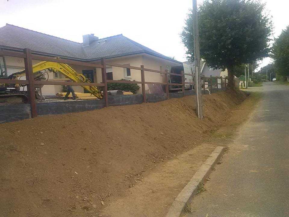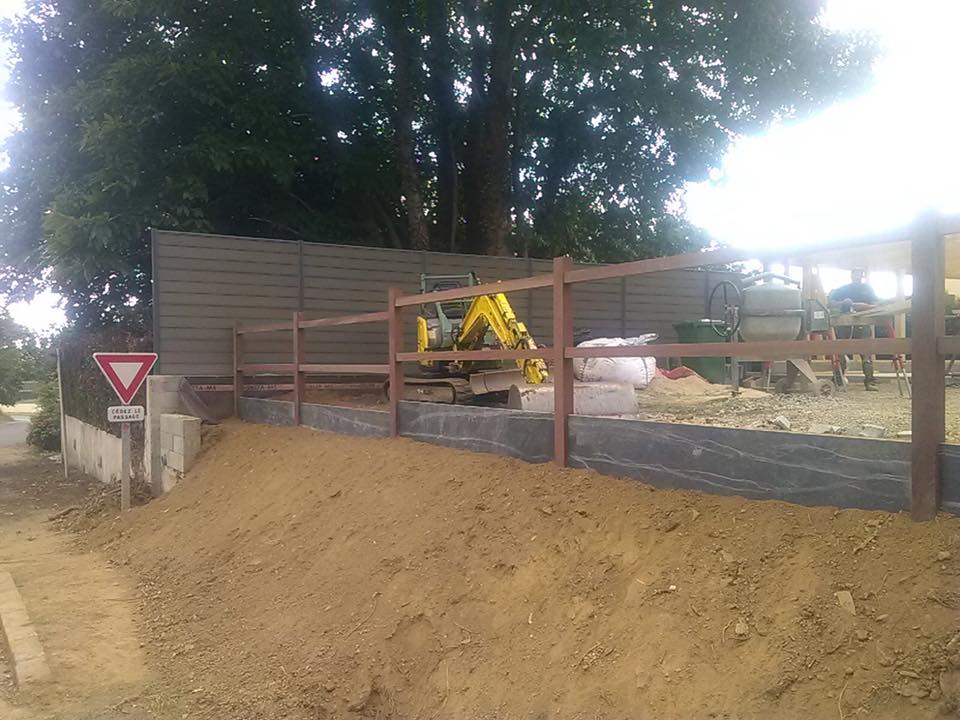 Tout d'abord, l'entreprise a commencé par le terrassement des limites de la propriété. Les fouilles ont ensuite été créées. Enfin, la ferraille a été mise en place pour permettre le montage du muret.