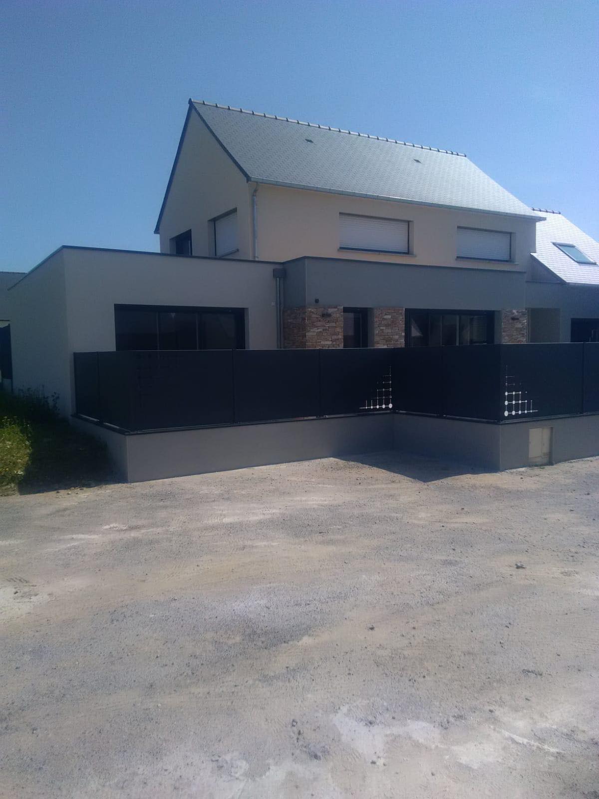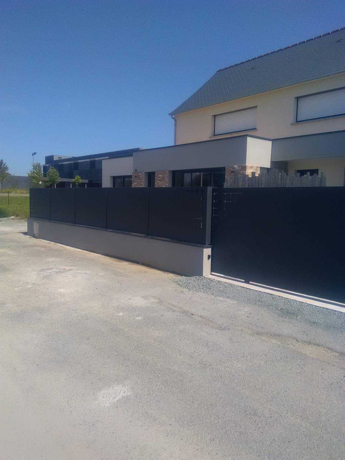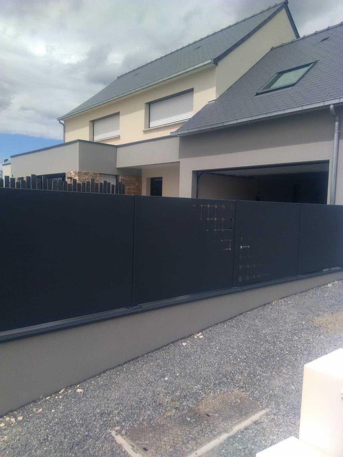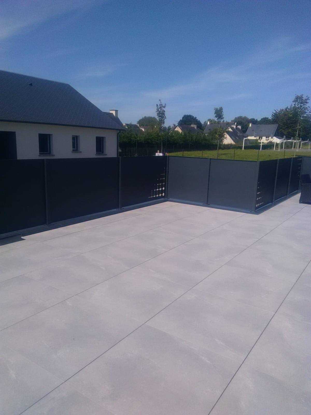 Pose d'une Clôture occultante, panneaux décors et portail coulissant à Plancoët