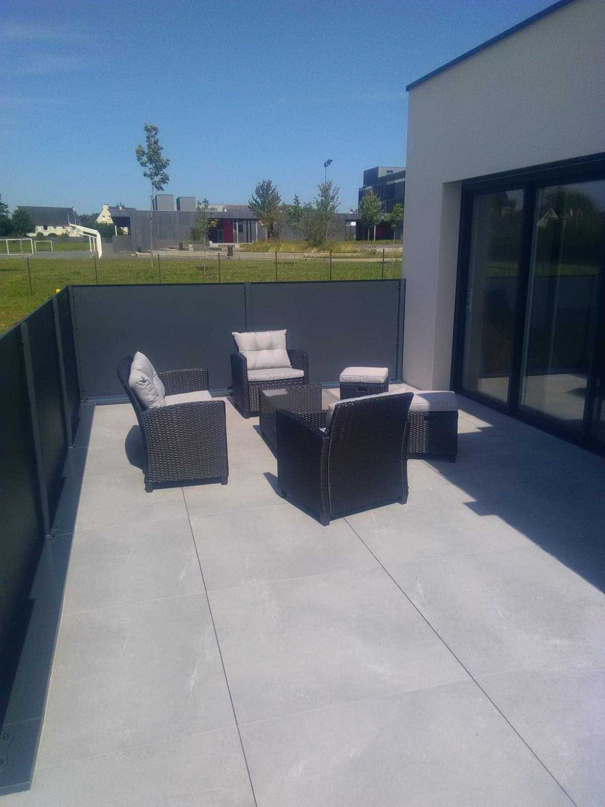 Pose de piquets ardoise brises vues découpés par nos soins pour un style totalement sur-mesure.