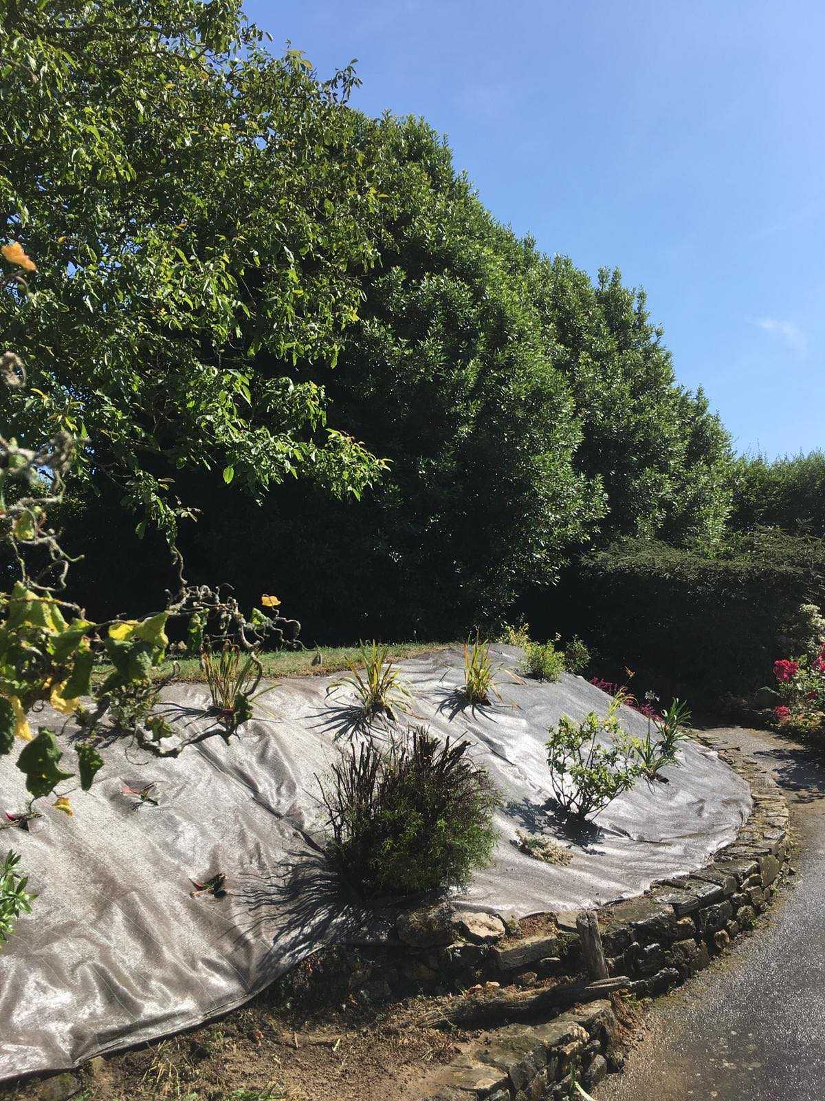 Ce talus sur la commune de Saint-Donoual à été bâché puis arboré pour préserver un minimum de verdure.