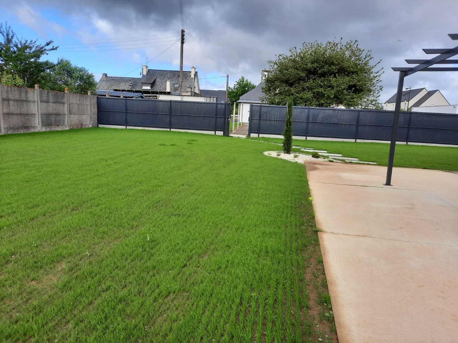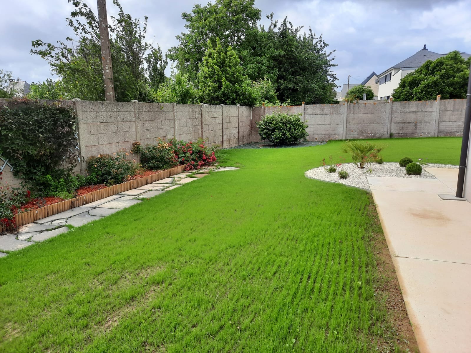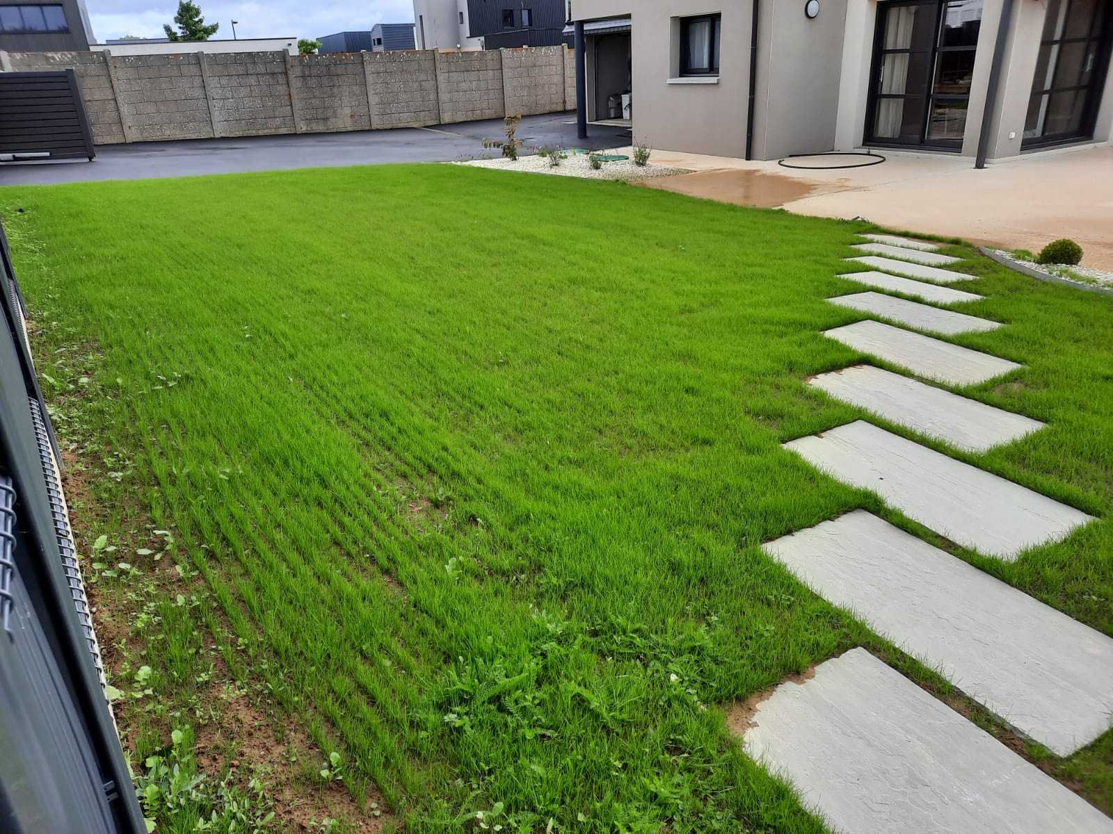 Engazonnement , massifs, chaînettes, pose de caniveaux et préparation enrobé
