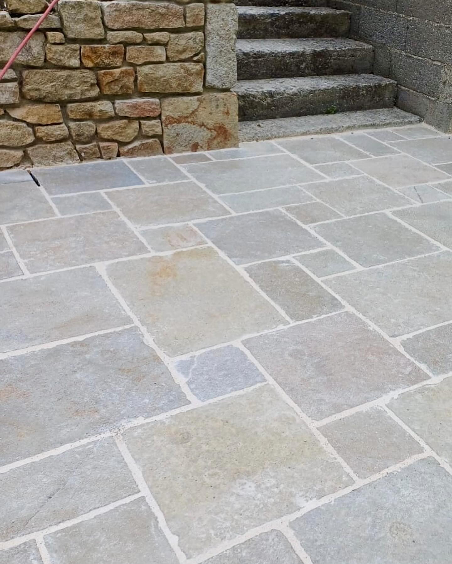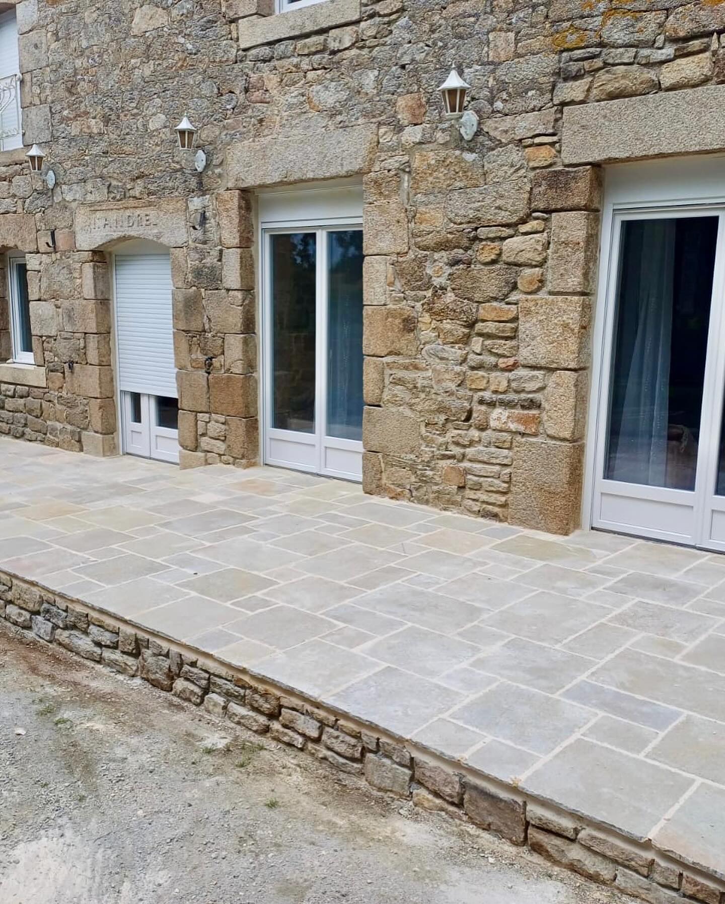 Réalisation d'une terrasse extérieure - calcaire tandur beige - Saint-Lormel