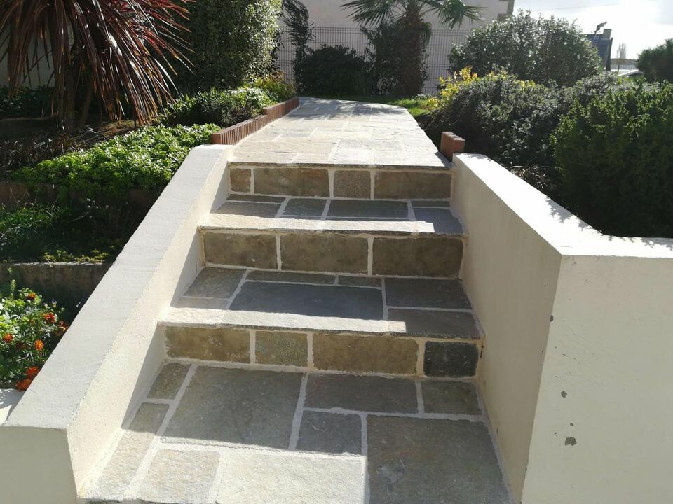 Notre équipe expérimentée travaille avec passion pour transformer les escaliers et les dalles en véritables éléments de design. Le dallage multiformat beige apporte une touche d'élégance et de chaleur à votre espace extérieur.